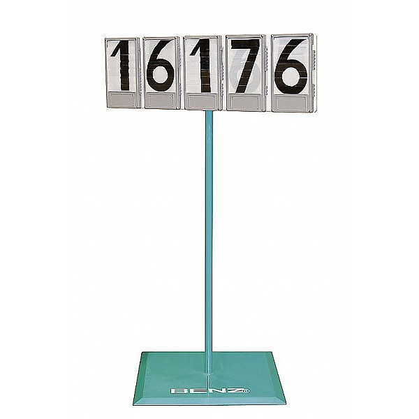 For gymnastics competitions, including steel tube floor stand. 5-numbers panels, plastic.