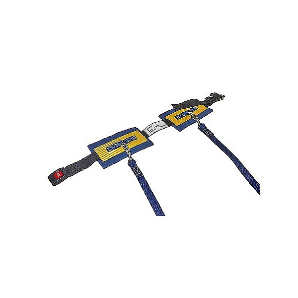 Security Salto belt for waist circumference 50-90 cm - new version. Ideal for learning and practicing somersaults and acrobatics parts from other sports. Made of nylon material with padding on the inside. The new integrated quick release strap is quick and easy to apply and remove again. 2 tethers each 90 cm long, which are attached to 2 PSA swivel snap hook, allowing easy rotary motion. Max. To 120 kg body weight allowed.
