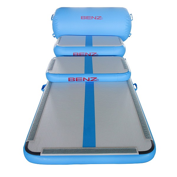 The special feature of the BENZ AirMat products is their elastic and extremely tear-resistant surface. Once filled, the double-wall fabric allows surface tension to support the athlete during jumps and landings. The degree of hardness can be individually regulated by the air pressure. The BENZ AirMat training set is easy to transport and can be used indoors and outdoors as well as in water.