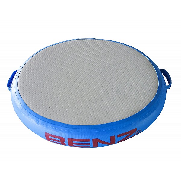 With the BENZ AirMat AirSpot, which is available in two different sizes, jumping and gymnastics techniques can be trained in a very small space. The round air cushion offers a wide range of applications. Starting with toddlers' romping and jumping in daycare centers, to the possibility of using it as a jumping-off point during physical education classes, to challenging exercises during gymnastics in sports clubs. It is suitable for any level of gymnastics, whether beginner or top athlete. Thanks to its elastic surface and double-wall fabric, the BENZ AirSpot has an even rebound over the entire gymnastics surface. It can be inflated quickly and can be stored space-saving after use.