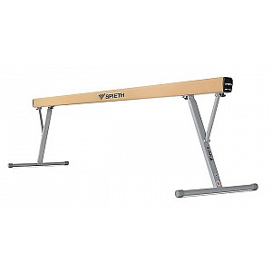 Competition balance beam, soft touch, silver, height adjustable from 75-125 cm in 5 cm increments, length 500 cm, width beam running surface 10 cm, width beam feet 112 cm, 85 kg, beam profile made of torsion-free and thick-walled aluminum, balance beam feet with durable powder coating, Soft rubber end caps on the beam base, FIG certified competition model