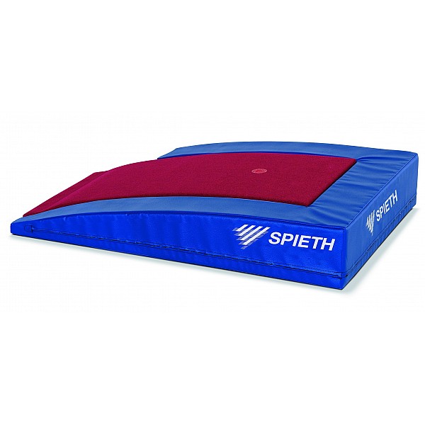 Springboard "KIDS 40" red, 120 x 60 cm, 40 kg usable. Youth and school springboard with composite foam padding and needle-felt red, 2x blue feathers.