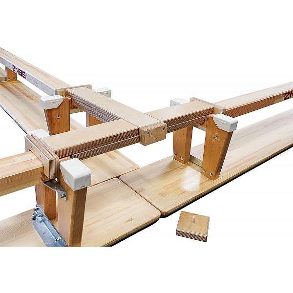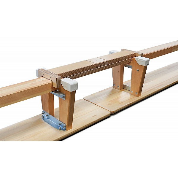 Easily convert several gymnastics benches into a balance beam with the BENZ gymnastics bench connection. This way you create more gymnastics possibilities in school sports and children's gymnastics. The benches can be connected both linearly or at right angles.