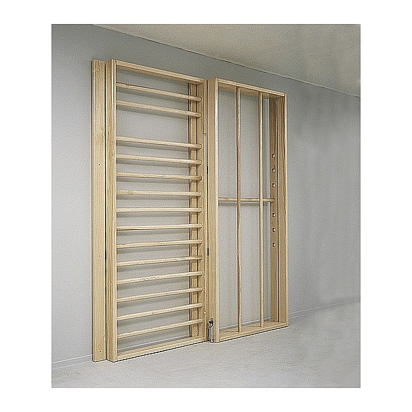 1 Sprossenwand element with a narrow distance between rungs, 1 climbing pole element 1 stretching rod Tauelement complete with all fittings and fastening parts (dowels). Required wall width 215 cm, height 240 cm. Depth expanded cm 115, folded 25 cm.
