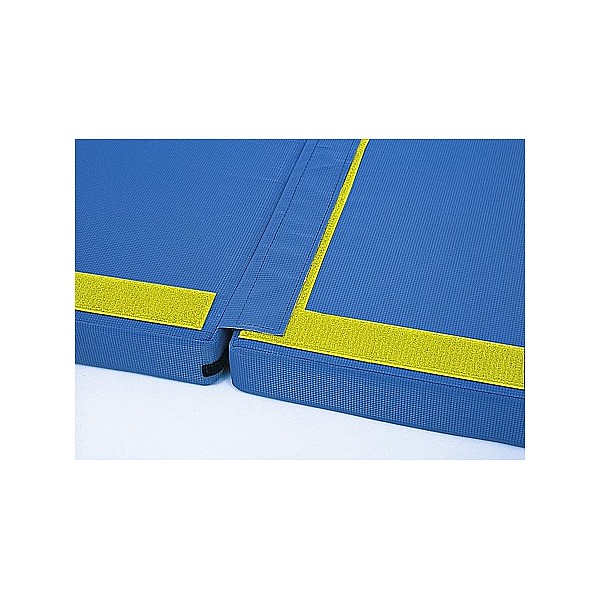 Soft floor side with PVC tarpaulin and polyether foam core, landing side with area-elastic lightweight foam core and needle felt covering. Specifications: High-quality surfaces (PVC with 780g/mm² + strong needle felt covering) Non-slip profiled underside Carrying handles for easy portability Includes Velcro connection corners Air grommets for optimal ventilation Default Color: Blue / Yellow Material: Eco-friendly PVC and needle felt Foam mat core: RG 22 foam According to DIN EN 12503-1 type 4 and type 8 Area of application: School and club Fitness, training, coordination Functional training Athletics