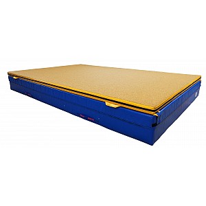 The BENZ low jump combination mat combines the properties of a low jump mat with those of a soft floor mat. Product features: Available sizes (W x L x H): 200 x 300 x 30 / 200 x 150 x 30 cm. Yellow mat side: Low jump mat with 5 cm stabilization layer. Blue mat side: soft floor mat with polyether foam core Long sides with continuous ventilation grid 4 tear-proof carrying handles