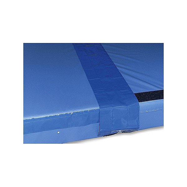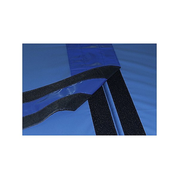With Velcro safety system, cover made of PVC tarpaulin with ventilation eyelets and carrying handles, with joint closure and connection flap for connecting any number of soft floors. Specifications: Easy to clean surface Non-slip profiled underside Carrying handles for easy portability Including Velcro connection flaps on the front and long sides Air grommets for optimal ventilation Suitable for indoor and outdoor use (outdoor mats and a rain cover are required) Default color: Blue Material: Eco-friendly PVC Foam mat core: RG 22 foam According to DIN EN 12503-1 type 8 Area of application: School and club Fitness, training, coordination Functional training Athletics