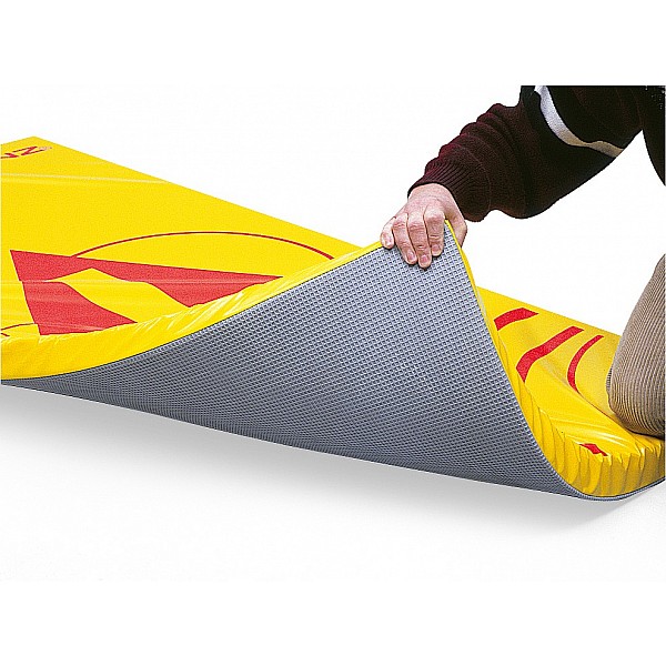 Design mats are developed by Benz, are characterized by their modern optics and proven concept of the gym mats from. The mats are particularly well suited for group games and group work. As backing non-slip rubber waffle back is used, making the mats even under extreme loads in place. Yellow PVC coating printed with triangles and rings. Phthalate! No dangerous softeners!
