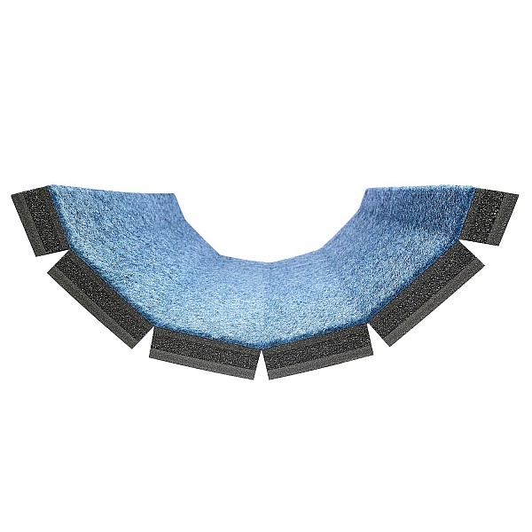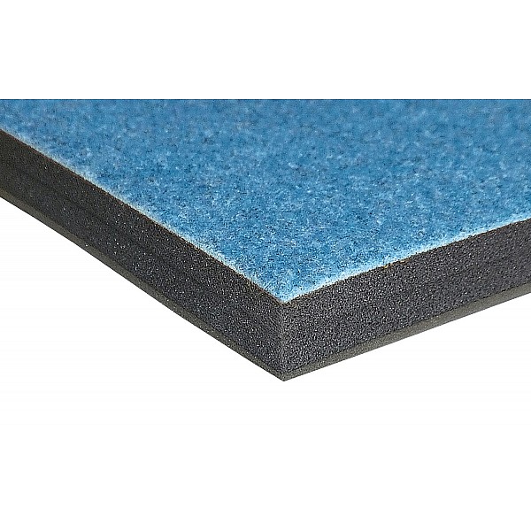 The floor roll mat is characterised by its excellent damping properties due to the multi-layer lightweight foam. The carpet covering consists of a blue-coloured needle felt velour. Thanks to the exact, smooth edges, several roll mats can be laid together without joints. To prevent slipping, we recommend using Velcro tape to connect them. Another advantage of the floor roll mat is that no roll-up core is needed for rolling up thanks to the incisions on the underside.