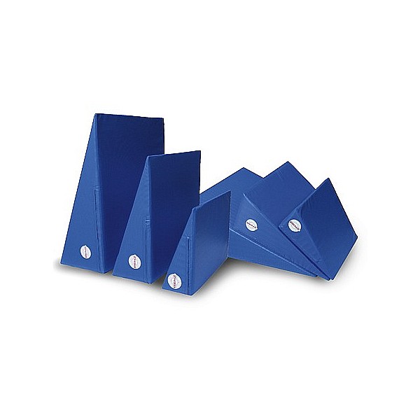2 GYM wedges large, 2 medium and 2 wedges GYM GYM wedges small. Soft polyurethane foam core RG 35, coating of profiled PVC-turn matting, blue. The wedges are designed for many applications such as Children's gymnastics, rehabilitation area, etc. a very useful sports equipment.