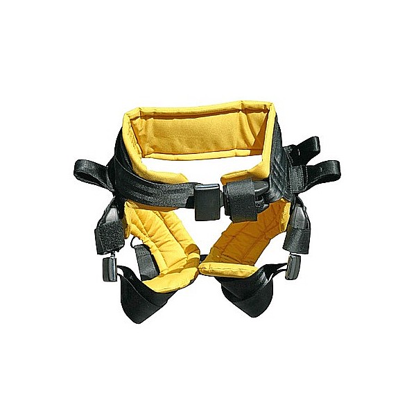 Harness with comfortable padded leg loops. The strap has, at which the snap-hook is fastened with the latex hoses left and right in each case 2 stable suspension loops. Highest security offer adjustable loops that guarantee a perfect fit and prevent the Metallgurtschlösser that are additionally protected with Velcro to accidental opening.