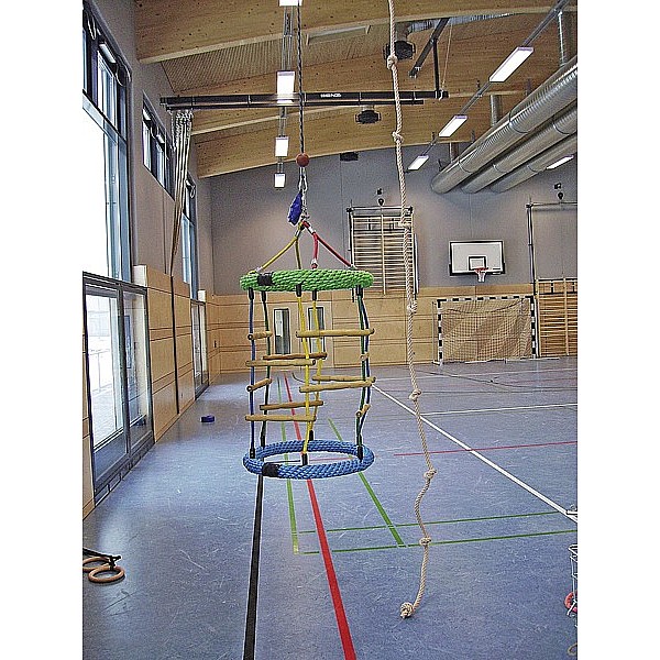 Rope ladder to ÖNorm. Polyethylene rope Ø 16 mm. Length: 5.00 m, width 32 cm, gimbal, 13 hardwood rungs. Resilient kg to 180th