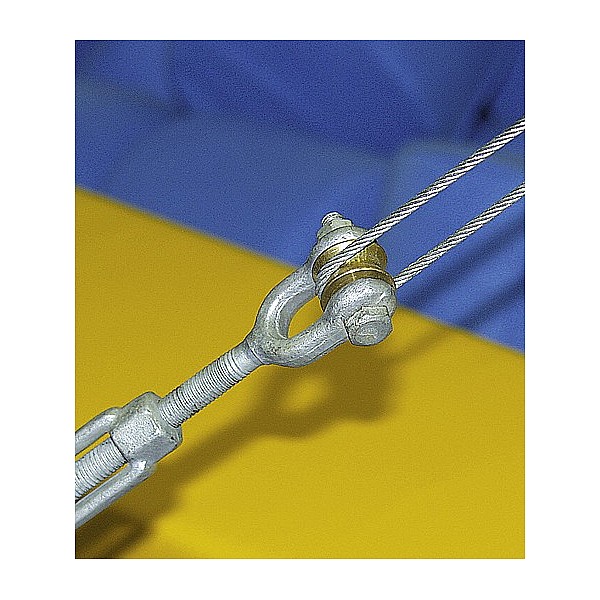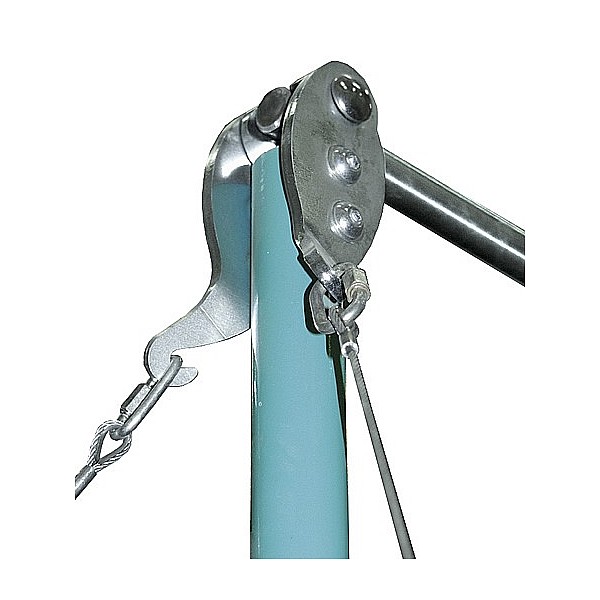 Double strain and tension devices. New rod bearing allows very best gymnastics properties. High bar made of stainless spring steel. Adjustable height of 245 cm to 315 cm in 5 cm increments. 4 steel cable tension with Einhängeketten and tension devices.