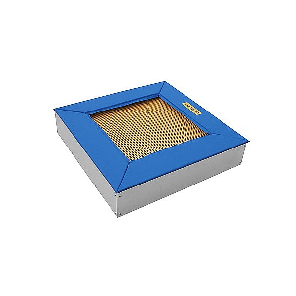 Frame profile 150 x 150 x 30 cm of high quality steel for installation in the ground, hot dip galvanized, pit depth 30cm + 10cm below the jump area. Jumping sheet made of PVC coated mesh (107 x 107 cm). 36 steel springs length 185 mm, Ø 20 mm, kg weight 113th For kindergartens and other facilities with controlled access.