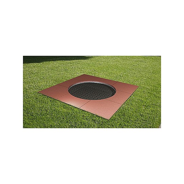 Frame cover by rounded safety tiles Safe that provide maximum security and a seamless transition to the jumping mat. Jump cutout circle diameter: 1.48 m. The Playground XL is , corresponds to the playground equipment standard DIN EN 1176, is weatherproof, year-round use and ideal for outdoor use.