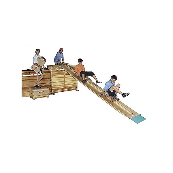 Probably the most popular among children accessories to our vaulting box series with a huge fun potential! Length 400 cm, width cm 50th Attached guide rails allow a safe and crash-free straight running of roller boards. The launch platform 50 x 50 cm is by means of webbing e.g. attached to a vaulting box. The transition from the runway to the ground is alleviated with a hinged delivery plate. The speed can be varied depending after jump box height. Without rolling board and box. Length 400 cm width 50 cm x 50 cm launch platform 50 without rolling board and box