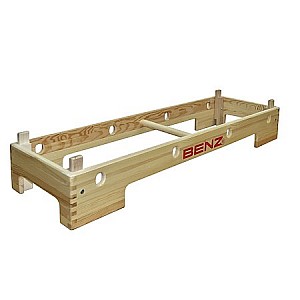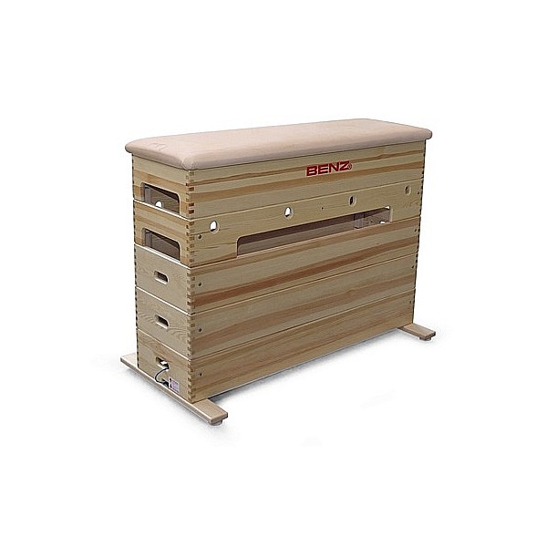 Retrofit kit for existing BENZ® jumping boxes. Jump box top with recesses on the long and end sides, for hanging the BENZ® jump box accessories as well as 4 holes on the long sides for holding ladders and rungs. Details solid pine wood Cover: core cowhide or imitation leather Dimensions (L x W x H): 150 x 50 x 26 cm plug system change from year of manufacture 2004 When ordering, please check which year of manufacture your jump box has, so that the appropriate plug-in system is ordered.