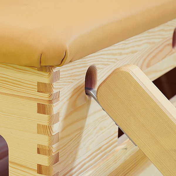 3-part mini-jump made of pinewood. With cowhide leather, with recesses at front and sides, and holes at the longitudinal sides.