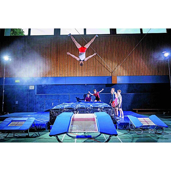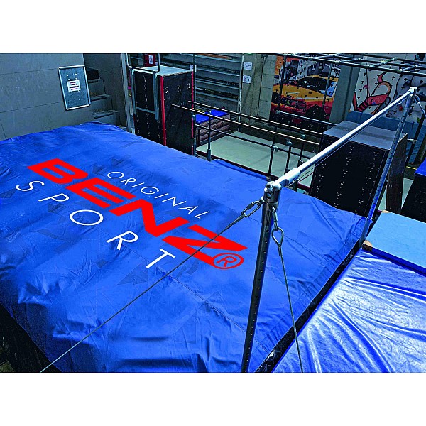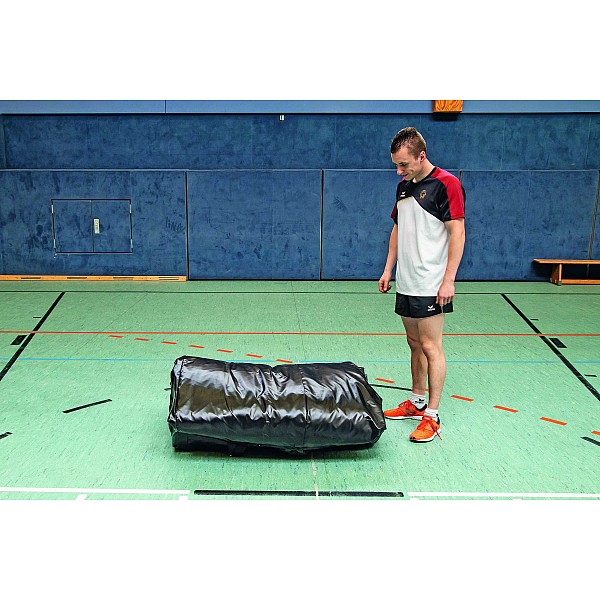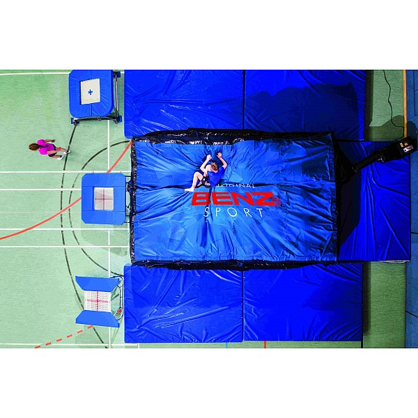 The BAGJUMP black / blue with the BENZ logo is ideal for school lessons or gymnastics in clubs. It is a revolutionary airbag system with a soft-touch topsheet and a fan. Ideal for a wide variety of sports, school races, trampoline jumping, stunts, etc. - it can easily be used both indoors and outdoors. The soft touch topsheet is machine washable. Due to the different air columns and safety zones in the mat, a simultaneous landing of several jumpers is possible. Including blower The BAGJUMP is available in sizes S / M / L / XL