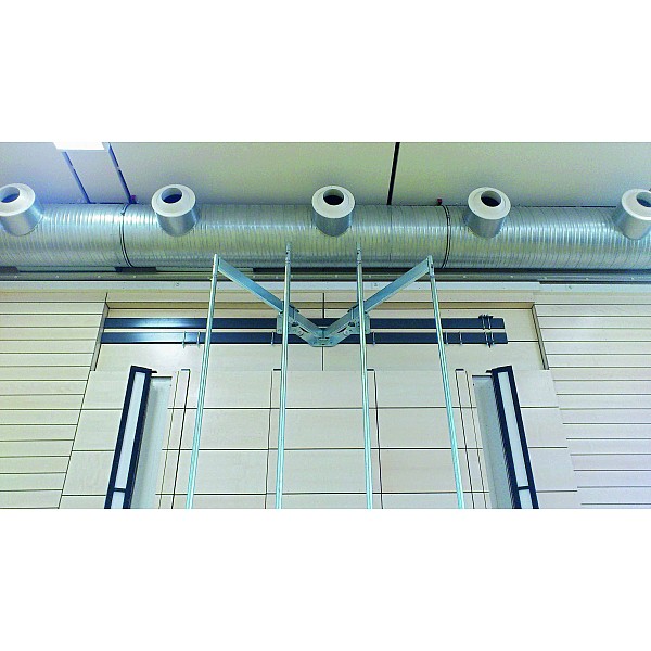 Climbing poles 'K4', 4-rods with a novel Schwenkmechanismus.Arretierungsmöglichkeit by vertically shifting the climbing poles. The climbing bars are the pivoting back in parking position in pairs together and can werden.Dadurch so parked behind an on-site narrow baffle door, the baffle wall continuously without large niche to run. Due to the novel Bodenarretierung of the rods, a bottom board is no longer necessary. Patent pending.