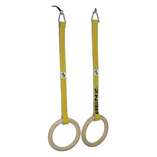 Gymnastics rings, special size for measurement method of the customer without ceiling mount. Still Hanging rings, according to regulations, with ball-bearing swivel joints. Turnringe steel wire ropes (plastic-sheathed), 70 cm long leather base belt, in multilayered. When ordering, please measure from floor to hook suspending, specify