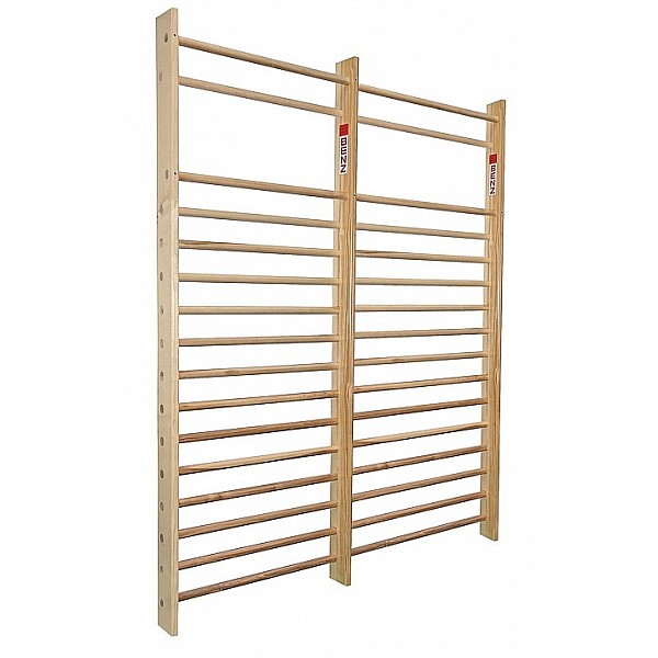According to DIN EN 12346, DIN 7910, fixed double field, dimensions 200 x 260 cm, lateral cheeks of choice pinewood, 16 oval rungs of tough ash, of which precedes the second All shoots individually screwed into the cheeks, without fastening material. The Wall bars offers many opportunities in gymnastic exercises and to increase fitness and conditioning. Weight 48 kg