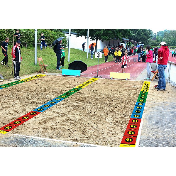 Make the athletics classic long jump suitable for children with the BlockX zone tape. The tape is divided into 25 cm zones according to DOSP and DLV specifications in colourful, appealing designs. Perfect for schools, athletics clubs and children's athletics.