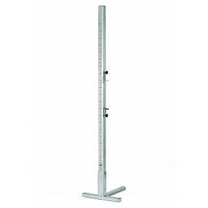 High jump stand, 3 m, pair, aluminum profile 8 x 8 cm, (w x h x d) 50 x 300 x 50 cm. Weight per stand 34 kg. T- stand includes weights and height regulation by continuously displaceable adjusting 50-280 cm.