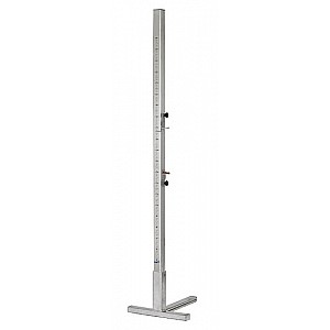 High jump stand (pair), 2.50 m, aluminum profile 8 x 8 cm, (w x h x d) 50 x 250 x 50 cm. Weight per stand 30 kg. T- stand including weights and the height regulation by continuously displaceable adjusting (50-240 cm).