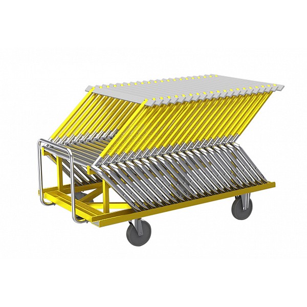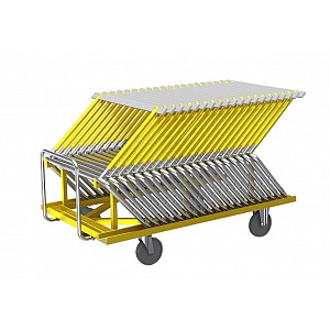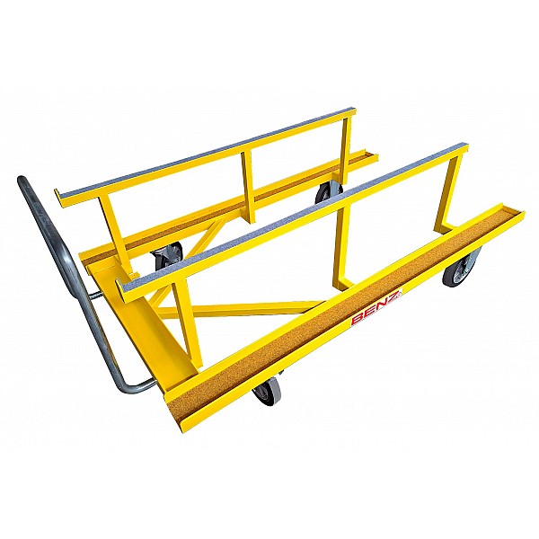BENZ hurdle transport trolley for transporting and space-saving storage of up to 20 hurdles. The trolley is completely walkable from the back for comfortable, fast loading. Sturdy tubular steel construction, with hand bar and large transport wheels (2 swivel), which make the trolley very maneuverable. Suitable for 20 pieces hurdles.