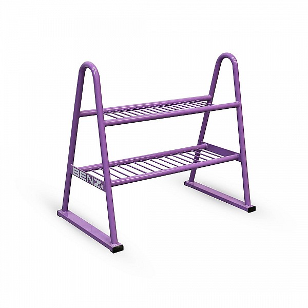 The discus stand made of painted steel is the ideal solution for the structured and secure storage of discus discs during training and competitions. With a capacity of up to 22 discs, it offers ample space for clearly arranged storage of various weight classes. The robust, welded tubular steel construction ensures high stability and durability, even under intensive use. The purple paint finish not only gives the stand a modern look but also protects the material from corrosion and external influences. Thanks to its compact design, the stand can be integrated into equipment rooms, sports halls, or on sports fields to save space. It is indispensable equipment for schools, clubs, and training centers that value order and professionalism.