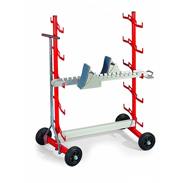 Trolley for ten starting blocks, red, (L x B x H) 0.9 x 0.48 x 12.1 m, 16 kg steel, powder coated, suitable for transport of up to ten starting blocks