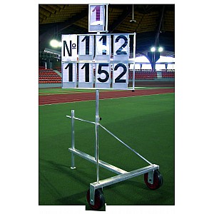 Result scoreboard, mobile. Base and aluminum frame, rotatable surface plate finish. 8 number plates, 1 red and 7 black numerals