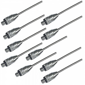 Needle valve M5 reinforced version 10-pack, made of chrome-plated brass, needle Ø 2mm, length: 48 mm, M5 thread with rubber seal.