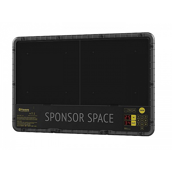 Very light, thin LED Player exchange Scoreboard included charger for the sport of football and rugby. The panel is used to display the numbers on the one- and-replaceable players and stoppage time at the end of a half. The polycarbonate housing is extremely shatter-proof and weatherproof.