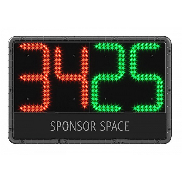 Very light, thin LED Player exchange Scoreboard included charger for the sport of football and rugby. The panel is used to display the numbers on the one- and-replaceable players and stoppage time at the end of a half. The polycarbonate housing is extremely shatter-proof and weatherproof. The digits are 23.5 cm high and by the bright LED's are up to a distance of 100 m highly visible. On the back is a durable, robust membrane keypad that allows easy, quick and comfortable typing the numbers. It can be stored up to 6 players change. On front and back, there are fields for sponsor stickers (front 48 x 9 cm, rear 35 x 9 cm). Dimensions (W x H x D) about 58 x 38 x 3 cm. Weight 2.5 kg. Delivery inkusive storage and transport case (61 x 40 x 8 cm).
