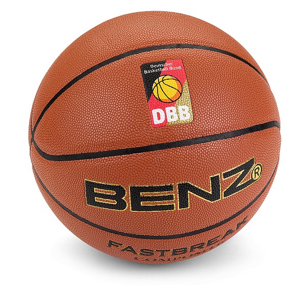 The BENZ Basketball Fastbreak is an ideal game and training ball. Be it in school lessons, in club sports or in your free time, the BENZ-Basketball Fastbreak has many possible uses. Thanks to its certification by the German Basketball Association, it can also be used in competitions and training at a competitive level. Its surface and workmanship make it an excellent ball for indoor and outdoor use. It impresses with its classic design, enhanced by golden lettering. Depending on the size and weight chosen, it is suitable for playing and training for children and young people or for adult women and men.