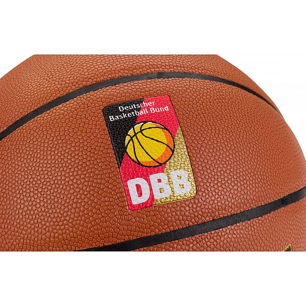 The BENZ Basketball Fastbreak is also made of high-quality synthetic leather, which is durable, abrasion-resistant and dimensionally stable. It is ideal for longer and permanent use in school or club sports. The special surface structure ensures an ideal grip even during faster play and more frequent rallies. This surface also offers minimized water penetration and is easy and hygienic to clean, making it suitable for both indoor and outdoor use. It is also DBB certified. This means that its size and weight correspond to the requirements of the German Basketball Association.