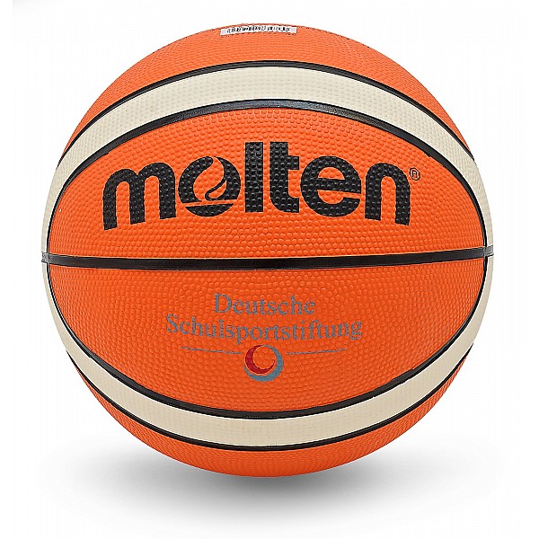 Perfect basketball for school sports made of rubber with easy handling. The 12 fields design and the studded surface provide a good grip. The MOLTEN basketball bears the logo of the German School Sports Foundation.