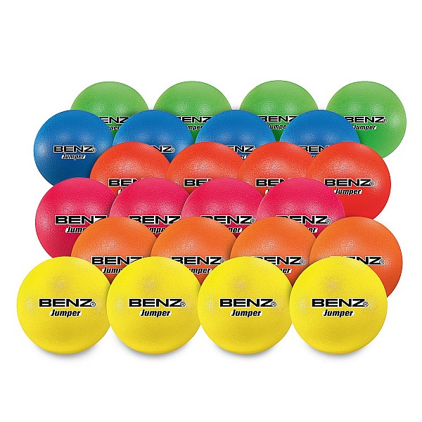 The BENZ foam ball Jumper is often used for didactic ball games and as a beginner's ball for various ball sports. Due to the high density of the foam used, it has very good bouncing properties. The soft foam ball is very popular with children and when used in therapy, because it allows a fearless and injury-free game. The ball set with 24 balls comes with 4 balls per color and offers a price advantage over buying them individually!