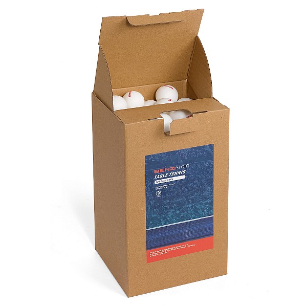 The BENZ Team Table Tennis Ball Set with 144 balls is ideal for school and club sports. The 144 table tennis balls are stored in a convenient, cardboard box, making them easy to transport and store.