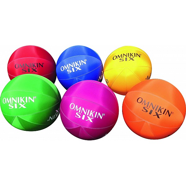 Omnikin Six balls Set of 6, yellow, green, blue, red, orange, pink, Ø 45 cm, 0.33 kg of nylon, suitable for various ball games