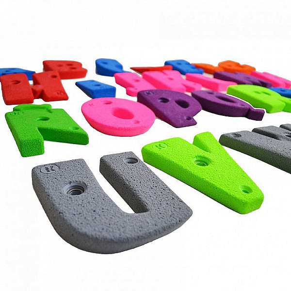 • 27 grips and footholds as letters