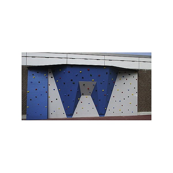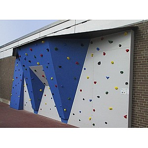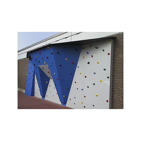 Outdoor boulder wall baptismal font. Beautiful boulder wall for schools, recreational facilities, parks, etc. It has different wall areas and thus appeals to children and young people of all ages. The equipment is made with the en climbing panel "outdoor sports". with a high quality quartz sand surface and a complete seal especially for outdoor use. The nuts and screws are stainless steel. 130e, special school Klettergriffe invite for climbing. The colorful wall design, as well as the central overhang immediately catch the eye - the eye-catcher for every schoolyard. The wall, of course, meets the requirements of DIN EN 12572 uind DIN EN1176. Information Boulder wall: width: height of 7,44m 2,98m climbing surface: 26m², including 130 school he climbing holds.. Incl. Wooden substructure for a concrete wall and wall plate. The fall protection is not included and must be ordered separately. Price includes delivery Fri.