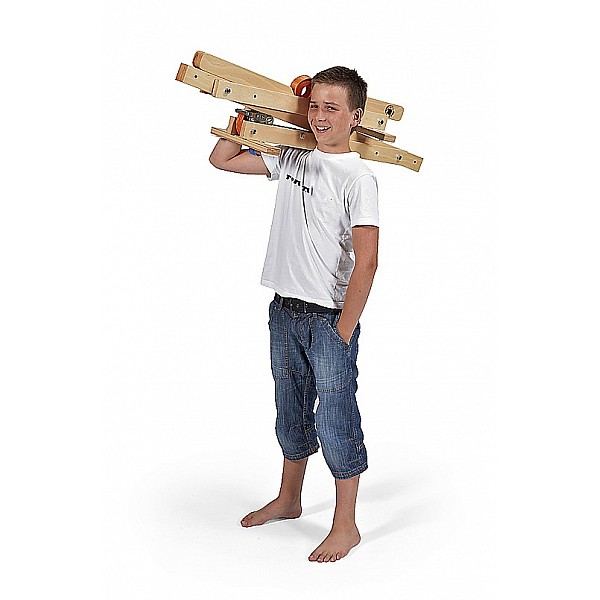 Slack board, the foldable slackline rack can be installed in almost any room. With a few simple steps, the Slack board is structured, folded and well stowed. Delivery incl. 35 mm wide slackline. The construction of beech wood ensures a load of 120 kg.
