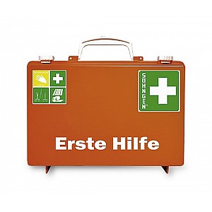 With first aid equipment plus sports extension, tailored to the accident risks and injuries in sports lessons, including special bandages for knee and elbow injuries, head wounds, abrasions as well as pressure bandages, cooling spray, cold packs and sports bandages. For mobile and stationary use, can be easily removed from the holder and taken to the accident site.