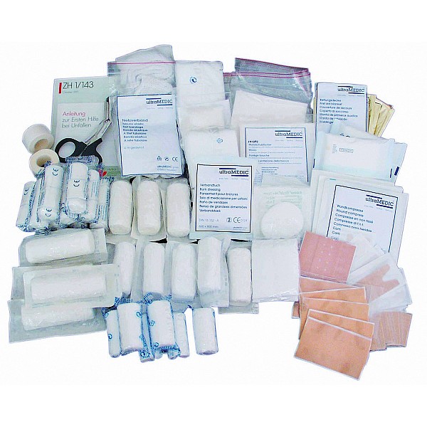 Filling Industrial standard filling according to DIN13169/2021. aluderm® bandage cloth 60 x 80 cm, DIN 13152-A1 Dermotekt® bandage cloth 60 x 80 cm, DIN 13152-A1 aluderm® small bandage pack, DIN 13151-K3 medium aluderm® field dressings, DIN 13151-M1 aluderm® bandage pack, DIN 13151-G1 DermaCare® small bandage pack, DIN 13151-K3 medium DermaCare® field dressings, DIN 13151-M1 large DermaCare® field dressings, DIN 13151-G2 WS-elast. Binding 4 m x 6 cm, DIN 61634-FB 62 WS-elast. Binding 4 x 8 cm, DIN 61634 FB-82 WS-Fixation 4 x 6 cm, DIN 61634-FB 62 WS-bandage 4 x 8 cm, DIN 61634-FB 84 aluderm® eye compress DuOcul6 aluderm® compress individually, 10 x 10 cm6 DermaCare® compress, individually, 10 x 10 cm2 SOÅNHNGEN® Plast 5 x 2.5 cm, DIN 1,301,916 aluderm®-aluplast elastically 10 x 6 cm, DIN 130198 aluderm®-aluplast finger dressing 12 x 2 cm8 aluderm®-aluplast fingertips Association