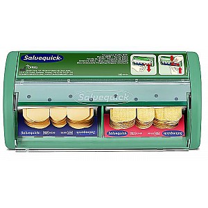 First aid case 'Quick' with integrated outside plaster dispenser, incl. DIN 13157/2021 filling. It allows plasters to be removed quickly and easily. The case does not have to be opened and the contents of the case remain unaffected and hygienically clean in accordance with DIN regulations. Contents: 3x 4 in 1 hemostasis, 2 x 4-in-1 mini hemostasis, 45 quick plastic plasters, 40 quick textile plasters, 1 respiratory mask, 2 pairs of gloves, 1 emergency blanket, 2 elastic bandages (8 cm x 4 m), 2 elastic bandages (6 cm x 4 m), 1 Salvequick Cold Pack, 2 triangular scarves, 1 pair of scissors, 1 pair of tweezers, 1 first aid instructions, 1 bandage cloth 60x80cm, 6 compresses 10x10cm, 5 non-woven cloth 20x30 cm, 2 eye compresses, 2 plastic bags, 1 adhesive tape 5mx2.5cm, 28 plasters in mixed sizes: 4 plasters 19 x 72 mm, 8 plasters 25 x 72 mm, 4 finger plasters, 8 plasters 10 x 6 cm, 4 fingertip plasters
