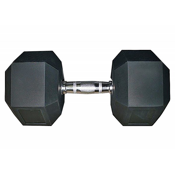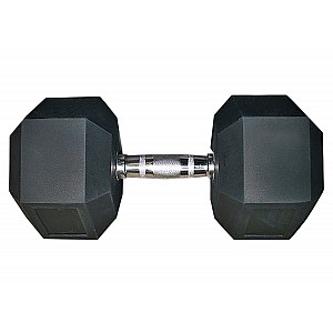 The hexagonal dumbbell can be used in a variety of ways in fitness and power training. With its weight ranges of 5-20 kg, in 2.5 kg increments, the difficulty and level of exertion can be individually adjusted. Made of steel, the dumbbell has a robust rubber coating on the weights. That protects the floor covering from damage if the dumbbell should slip out of the hand. The ergonomically shaped handle is chrome-plated and ensures an optimal grip even with sweaty hands thanks to the cross-wheel design.