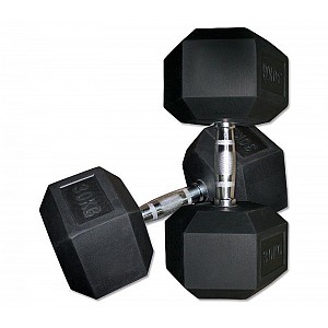 The hexagonal dumbbell sets can be used in a variety of ways in fitness and strength training. With the available weight classes of 1-10, 7.5-20, 22.5-30 and 32.5 to 40 kg, the intensity can be adapted to the individual training. The high-quality dumbbells with iron core and rubber coating protect the flooring from damage. The ergonomically shaped steel handle is chrome-plated and provides an optimal grip due to the ribbed surface. The elegant, hexagonal design of these dumbbells reliably prevents them from rolling away on the floor.